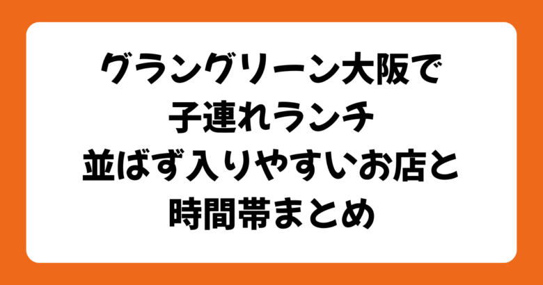 グラングリーン大阪へ子連れで行くなら、気になるのが「ランチ問題」。