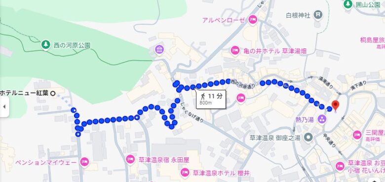 この記事は、草津温泉にある「ホテルニュー紅葉」から湯畑までのアクセス方法について詳しく解説します。